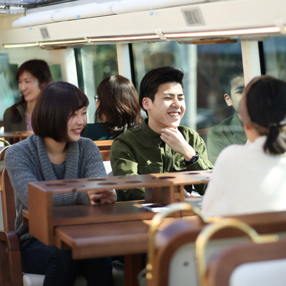 開放的な2階建てオープントップバスで車窓の景色を楽しみながら、その土地の魅力を五感で味わえる。全国各地を走ります!